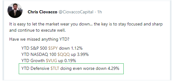 Would we be better off if we had a crystal ball and decided on 12/31/2017 to move to 100% defensive long-term Treasury bonds (TLT)?